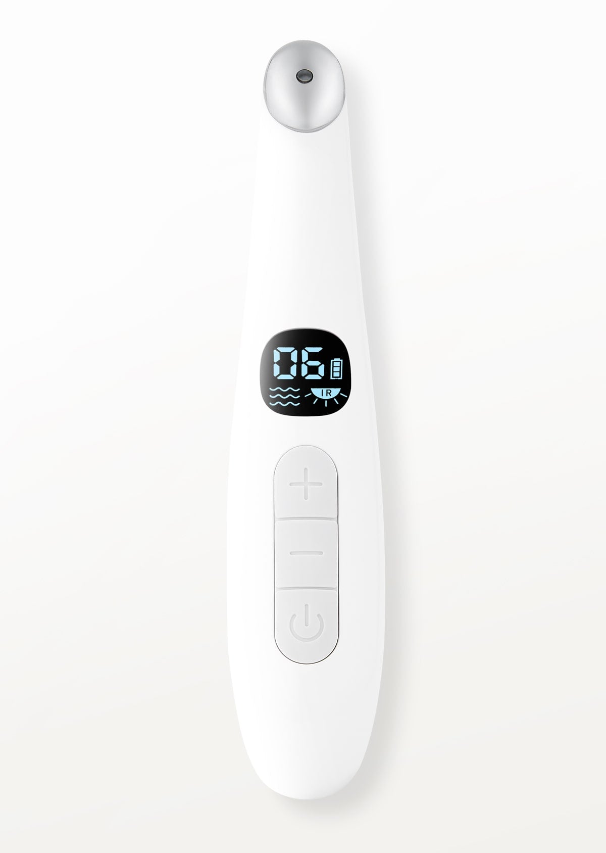 This handheld Skin Renewing Facial Tool is designed to work with our serums and crèmes to promote radiant, healthy-looking skin. Nine levels of heat plus facial massage combine with red light.